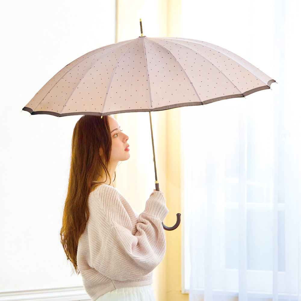 手開きタイプで軽量!裾のカラーがポイントのドット柄です。細めの手元がオシャレ♪