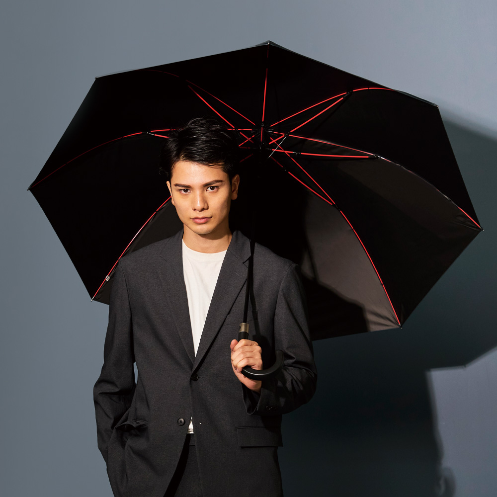 レッドカラーのグラスファイバー骨がポイント!Aジャンプでパっと開く!晴雨兼用仕様になりました。