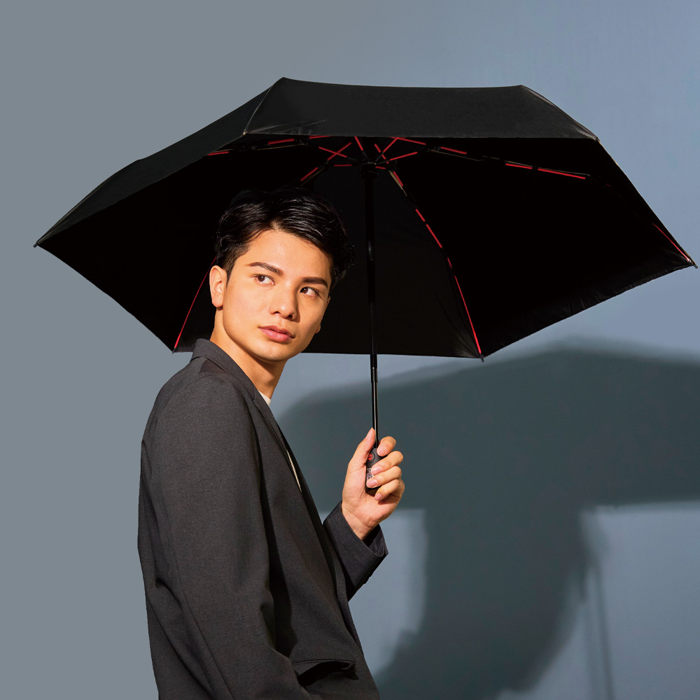 レッドカラーのグラスファイバー骨がポイント!ボタンのワンプッシュで自動開閉。晴雨兼用仕様になりました。
